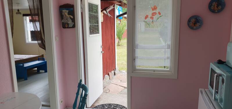 Vårt semesterhus ligger på norra delen av vackra Öland. Den är på 53 kvadratmeter och rymmer upp till 6 personer (helst 2 vuxna + 2 barn). Är ni fler än 6 personer kan ni även boka vår husvagn. Semesterhuset ligger direkt på vår 1800 kvadratmeter stora tomt. Semesterhuset är lämpligt för allergiker då husdjur tyvärr inte är tillåtna (Ett husdjur är tillåtet i det gula fritidshuset, knapp: Fritidshus Grandin). Den har ett vardagsrum, sovrum med dubbelsäng, barnrum med våningssäng och bäddsoffa, kök, toalett + dusch och altan under tak. En befintlig babysäng är möjlig och en barnstol finns också. En separat tvättmaskin finns tillgänglig (användningsavgift 25 kr). Vi har medvetet inte inrett vårt semesterhus på ett modernt sätt för att bevara den öländska charmen. Rökning är förbjuden i huset, men askkoppar finns tillgängliga för rökare på terrassen. Ankomst kan ske vilken dag i veckan som helst. Från 3 dagar och framåt kan du även boka dagligen. Du behöver inte oroa dig för sängkläder och handdukar, dessa ingår i priset. WiFi, tysk TV, bordtennis, studsmatta, gunga, cyklar och olika spel finns tillgängliga. Det är ca 3 - 5 km till stranden på väst- och östkusten med fina sandstränder. Närmaste mataffär, bageri, vårdcentral och restauranger ligger ca 5 km bort.
